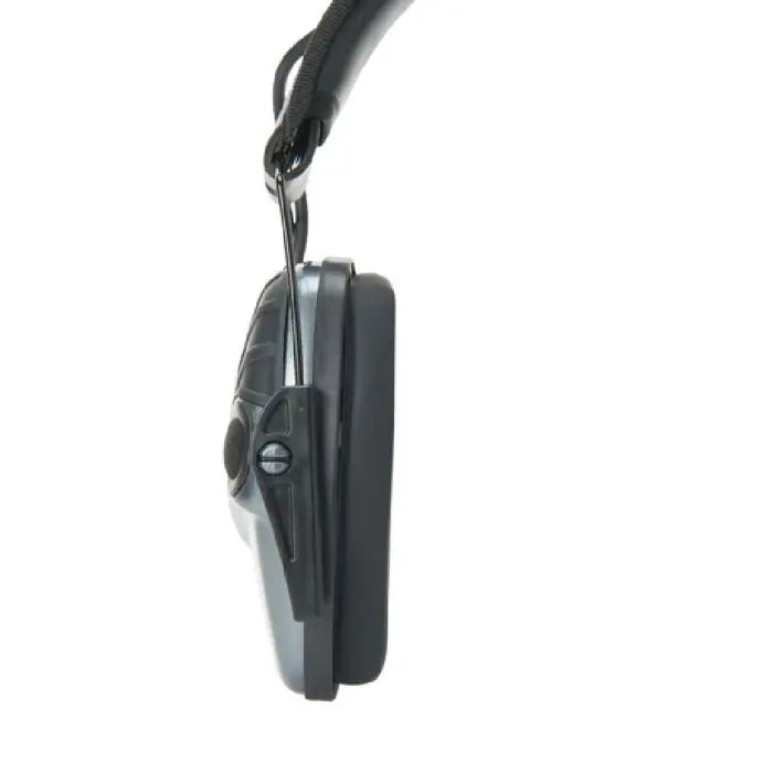 Earmuff actively listens and shuts off loud impulse noises like gunfire to a safe 82 dB; Noise Reduction Rating (NRR): 22