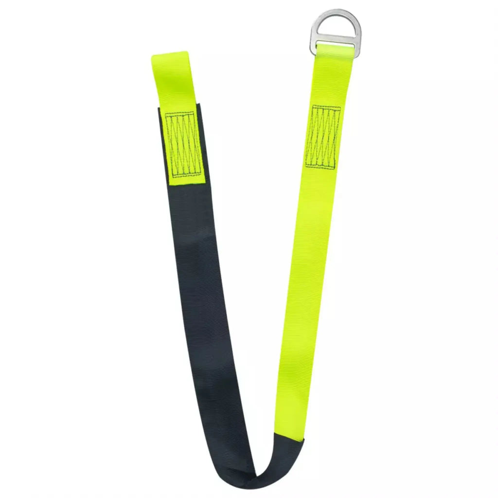 Materials: 1.75" (44 mm) polyester webbing, 24" (610 mm) wear sleeve, forged steel D-ring