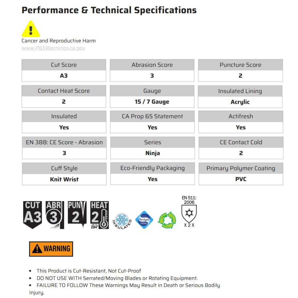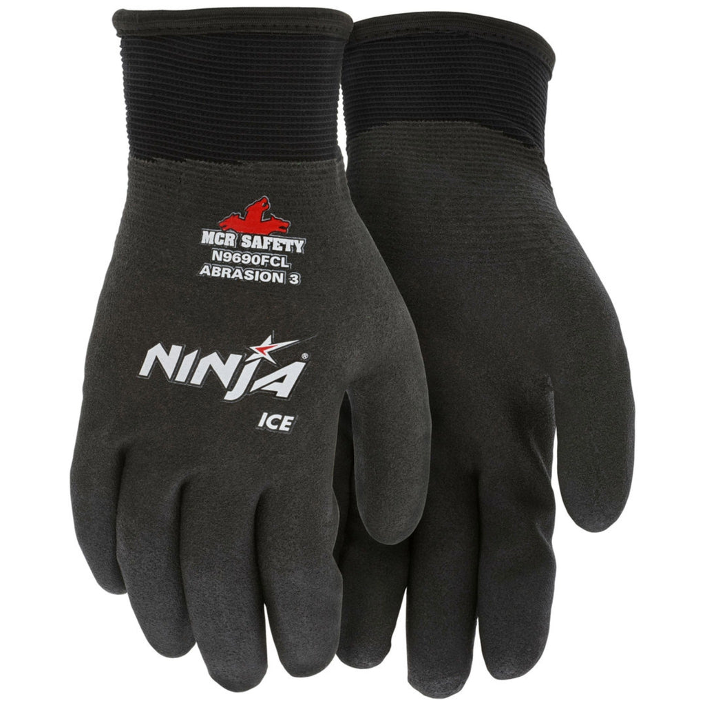 The MCR Safety Ninja Ice N9690FC Fully Coated HPT Insulated Work Gloves are engineered for superior performance in cold, wet, and demanding environments. Built with a 15-gauge black nylon shell and a warm acrylic terry interior, these gloves provide excellent insulation while maintaining breathability to keep hands dry and comfortable. The fully coated HPT (Hydropellent Technology) finish delivers a 360° anti-wet barrier that repels moisture and ensures a secure grip even in freezing, slippery conditions. The coating remains soft and flexible in temperatures as low as -4ºF, offering reliable dexterity in extreme cold. Encapsulated air molecules within the HPT coating help absorb impact, reducing fatigue during long work shifts. Treated with ActiFresh®, these gloves resist odors and bacteria for long-lasting freshness. Ideal for cold storage workers, outdoor laborers, utility crews, and industrial professionals, the Ninja Ice N9690FC provides maximum warmth, durability, and grip in harsh winter conditions. Available at Enviro Safety Products for dependable, high-performance cold-weather hand protection.