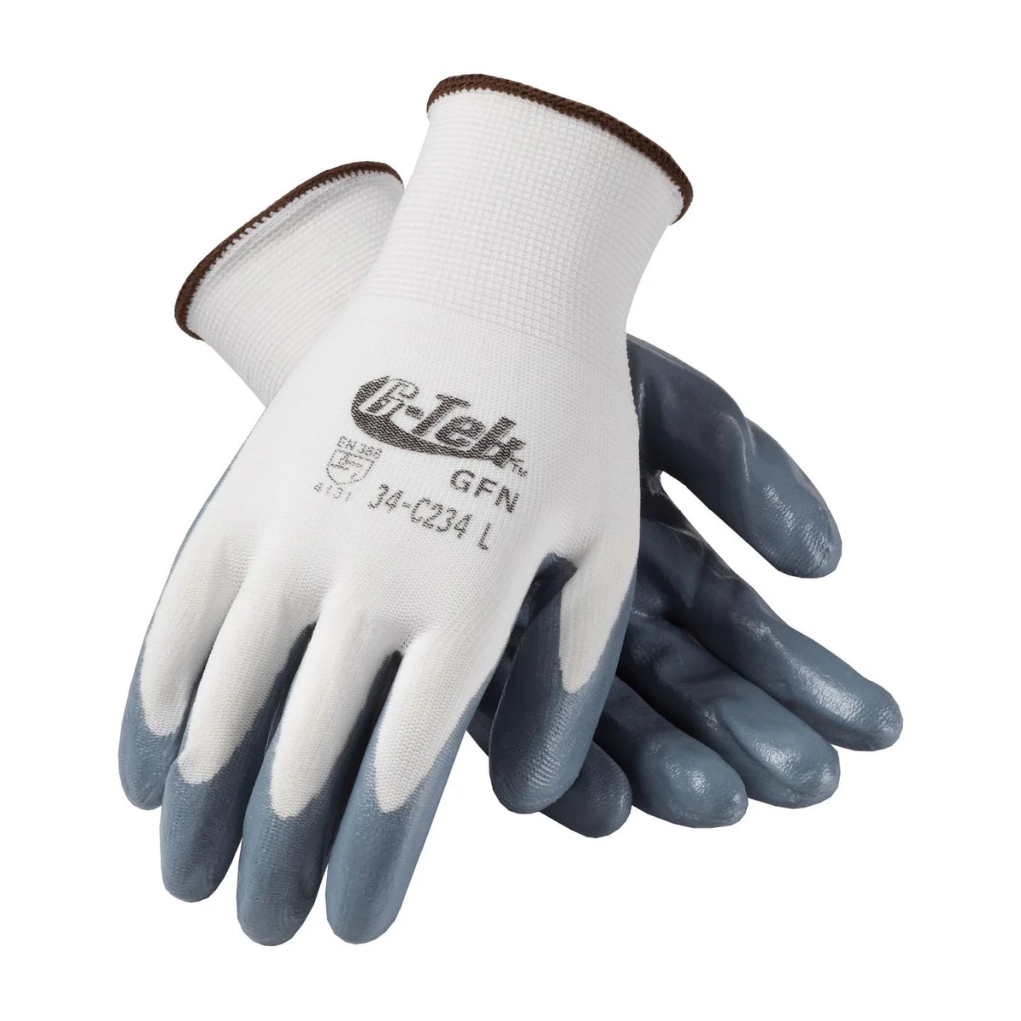 PIP G-Tek 34-225 Economy Seamless Knit Nylon Glove with Solid Nitrile Coated Smooth Grip, White, 1 Dozen