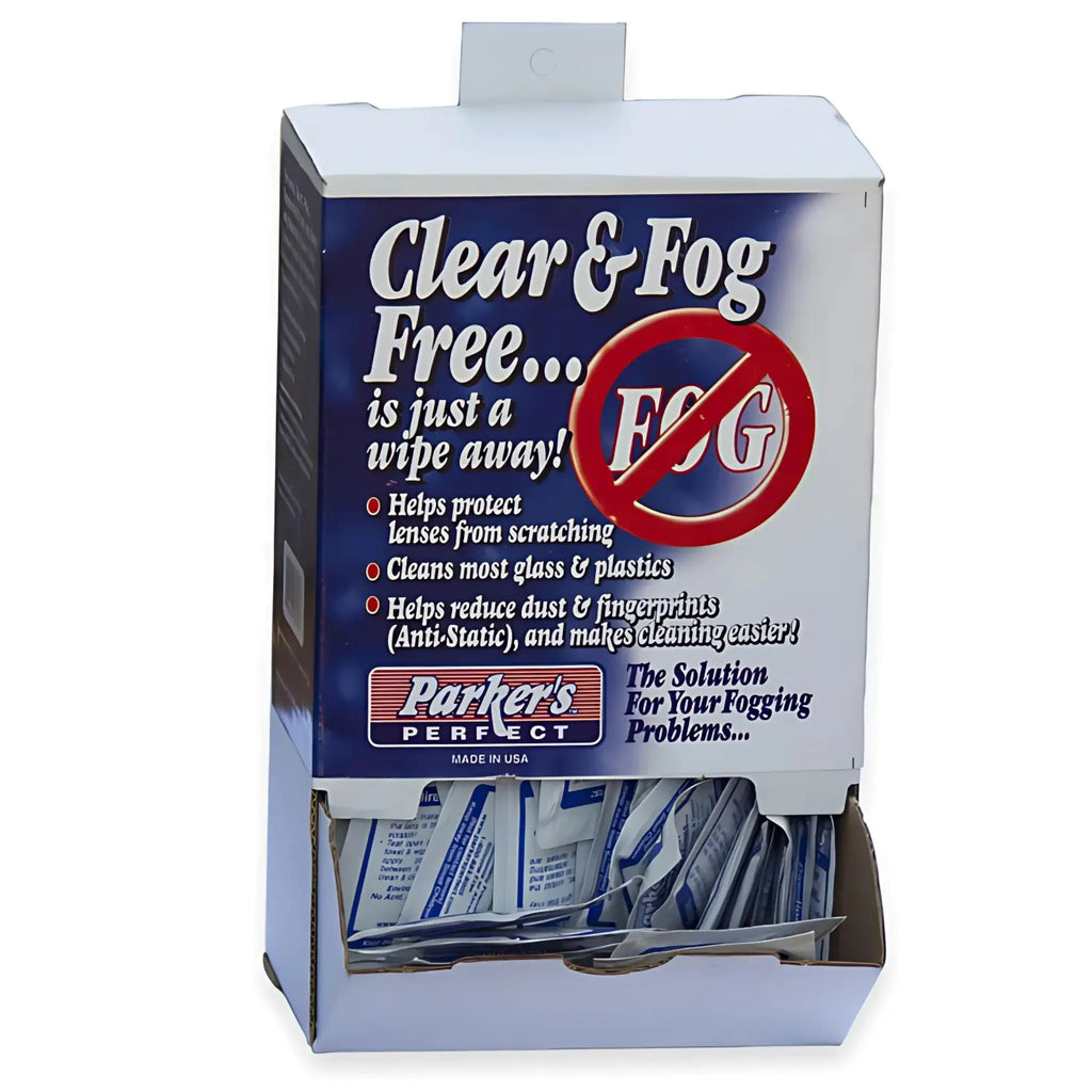 - 100 convenient pre-moistened anti-fog towelettes each sealed in a foil packet