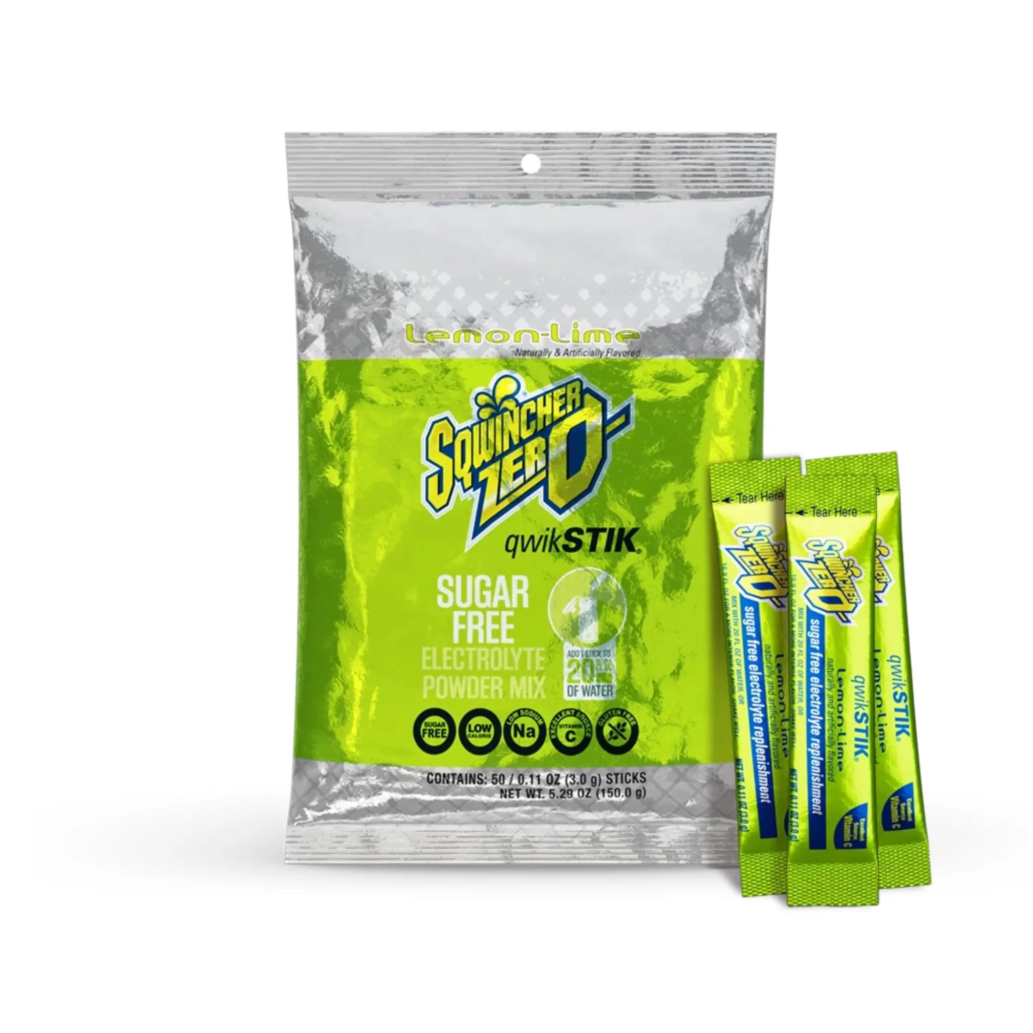 Sqwincher Qwik Stik ZERO 159060106 Sugar Free, Low Calorie Electrolyte Drink, Lemon Lime Flavor, 0.11 Ounce, Pack of 50, Case of 10 Packs