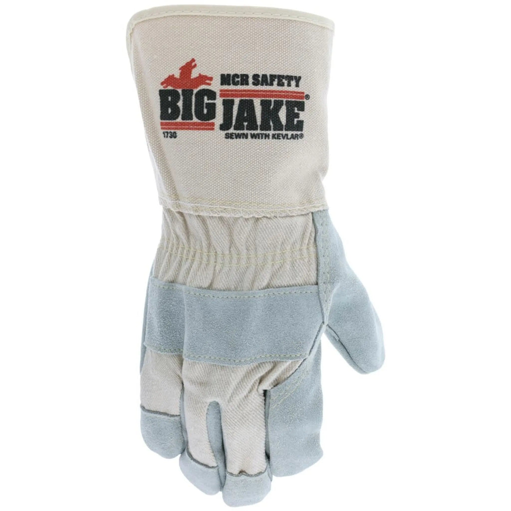 The MCR Safety Big Jake 1730 Premium A+ Split Side Leather Palm Work Gloves are engineered for workers who need maximum protection in demanding industrial environments. Built from premium A+ grade split side leather and reinforced with a double palm, these gloves are designed to resist abrasion, heat, and punctures during tough applications. The extended 4.5-inch gauntlet duck cuff offers superior wrist and forearm coverage, a feature many buyers value for shielding against sparks, slag, and sharp debris. Sewn with DuPont Kevlar thread, the 1730 gloves deliver enhanced strength and long-lasting performance, making them an excellent choice for welding, metalwork, oilfield, and construction tasks where heavy-duty hand protection is critical. Workers often ask how the 1730 differs from other Big Jake gloves—the duck cuff provides a sturdier, extended barrier, ensuring better durability and protection than standard cuffs. Sized for comfort and rugged use, they combine safety with all-day wearability. Enviro Safety Products, a trusted supplier of OSHA-compliant PPE, proudly offers the Big Jake 1730 gloves to deliver reliable hand protection that meets the highest standards for industrial safety.