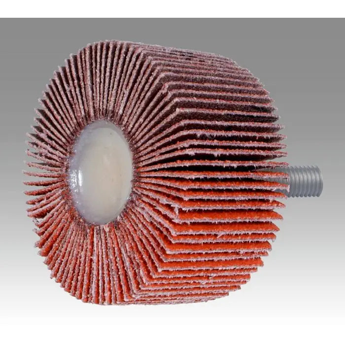 Coated abrasive flap wheels are the ideal choice for light grinding, blending, graining and scale removal on a variety of metals. The abrasive flaps offer a long lasting supply of fresh abrasives and a load resistant design. 3M™ flap wheels are available in both flange mounted and spindle mounted constructions with general purpose aluminum oxide or high performing 3M ceramic aluminum oxide blend abrasive grain.