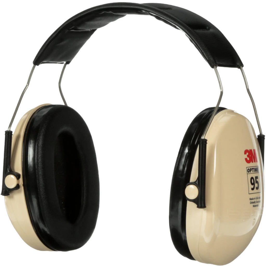 Peltor's lowest profile hearing protector earmuffs (OPTIME 95 Series). The wide, soft padded headband distributes weight while two-point suspension exerts low pressure for comfortable, long term use. Soft, liquid foam-filled ear cushions provide added comfort. NRR 21 dB.
