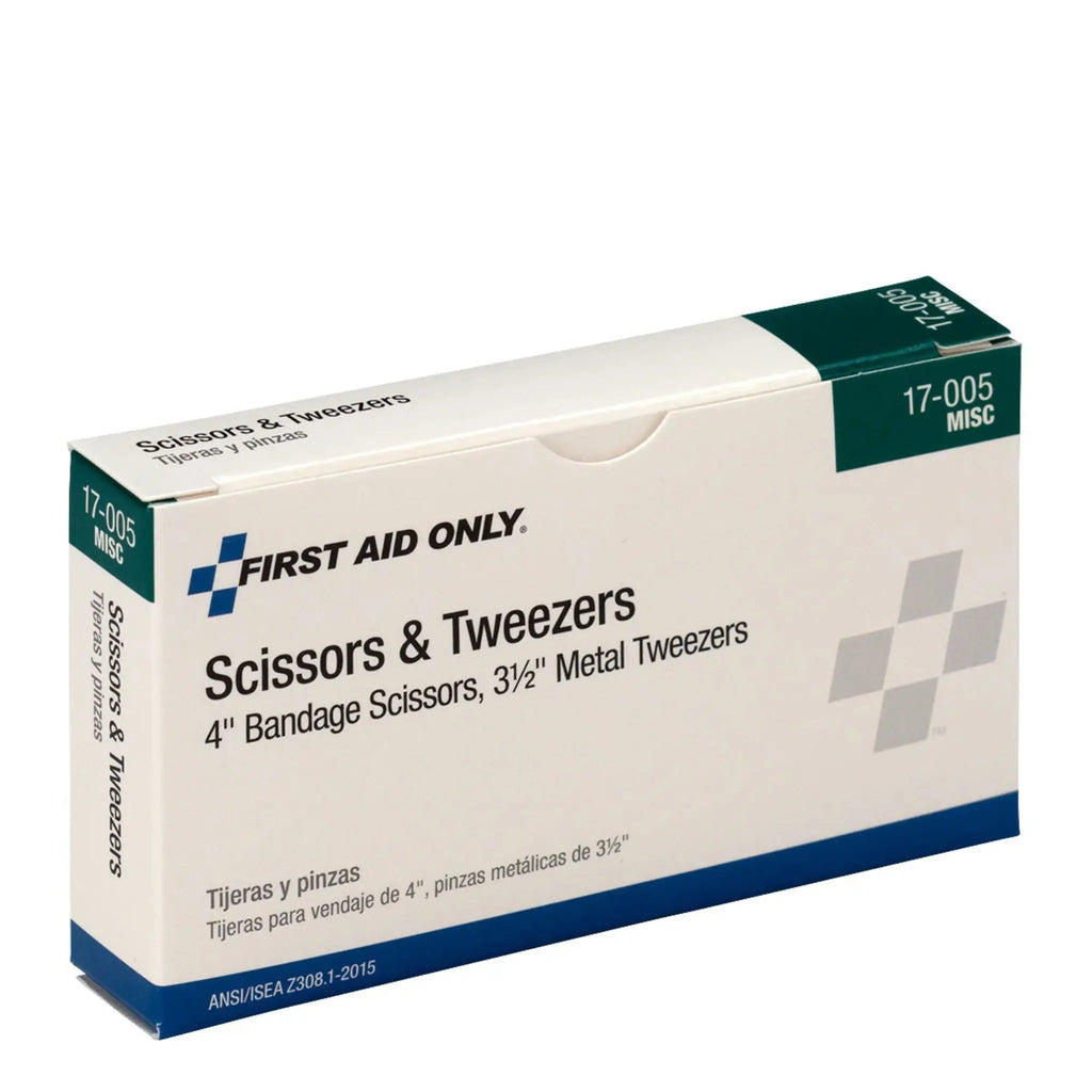 The ACME UNITED CORPORATION First Aid Only 17-005 Red Stainless Steel Scissors and Tweezers set is a compact and reliable first aid accessory designed to support efficient wound care and minor medical procedures. This combination pack includes precision stainless steel scissors and tweezers—both essential tools for removing debris, cutting bandages, or handling dressings with accuracy and hygiene. The vibrant red handle ensures high visibility in emergency kits and low-light environments, making retrieval quick when seconds count. Durable and corrosion-resistant, the stainless steel construction is built to withstand repeated use in demanding environments. Designed for portability and ease of use, this set is a valuable addition to workplace first aid stations, field response kits, and individual emergency preparedness supplies.