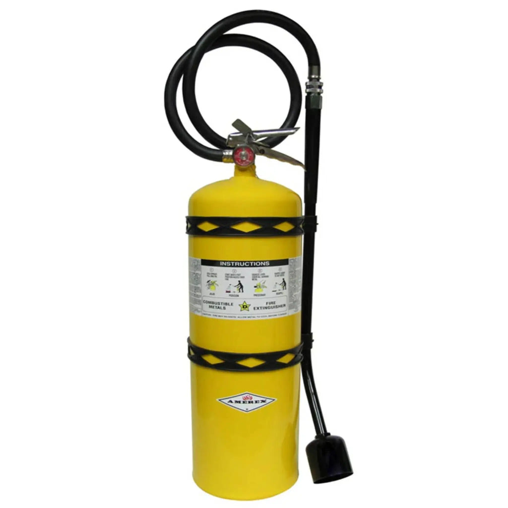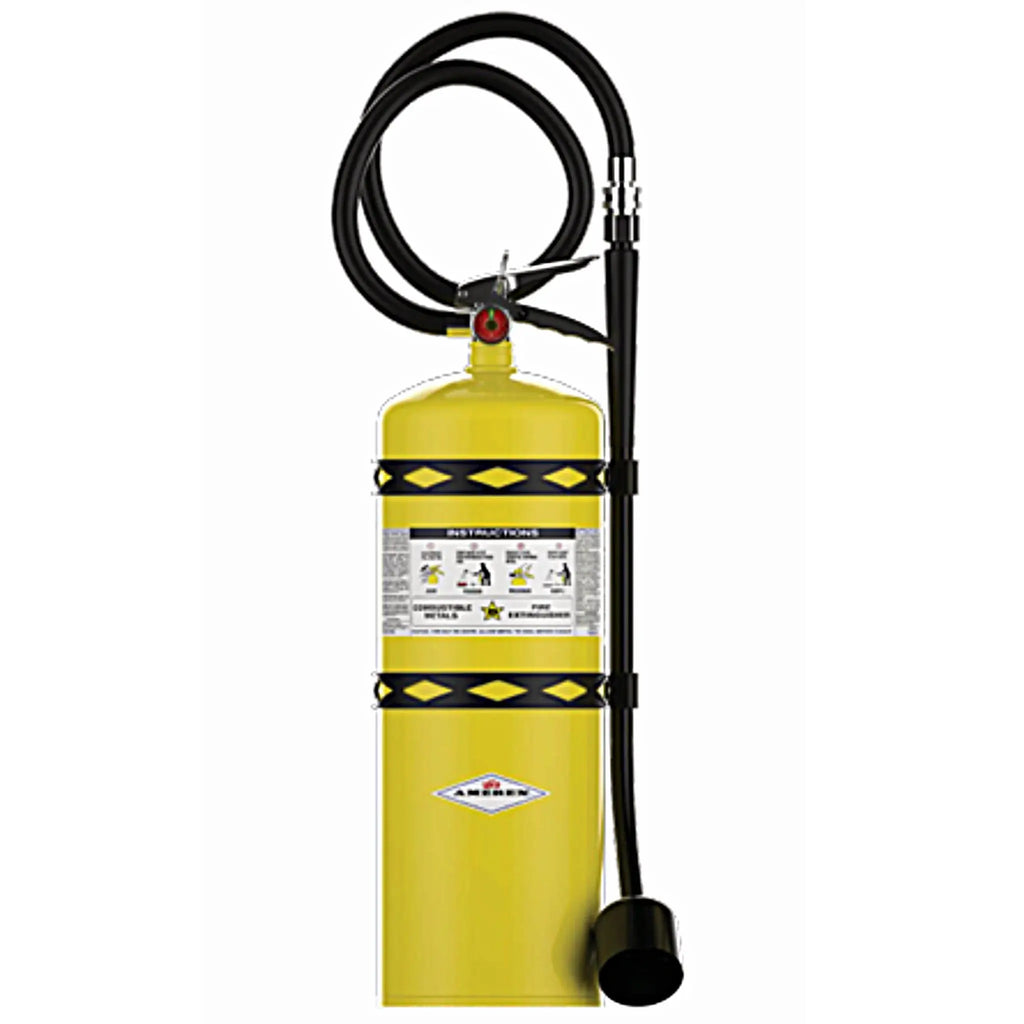 The Amerex 16882 Class D Portable Extinguisher Model B570, 1 Each is a purpose-built, industrial-grade solution engineered to safely control and extinguish combustible metal fires. Filled with 30 lb of Amerex’s specialized sodium-chloride “Super-D” dry powder, the B570 forms a heat-insulating crust that excludes air and dissipates heat from burning metals, making it highly effective on magnesium, sodium, potassium and sodium-potassium alloys — and demonstrably capable against titanium, zirconium, uranium and powdered aluminum in appropriate scenarios. Built on a heavy-duty steel cylinder with a chrome-plated brass valve and either a hose-and-horn or wand applicator, this extinguisher provides a stable, non-dispersing discharge with an effective operating range of approximately 3–6 feet and a discharge duration near 24 seconds, allowing trained responders to apply agent from a safer distance. FM and UL approvals, combined with manufacturer technical guidance and an available SDS, support professional use in labs, manufacturing, metalworking, and specialty storage areas where Class D hazards exist.