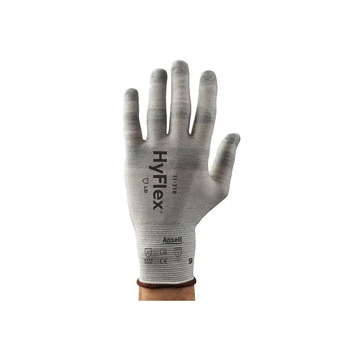 Ansell HyFlex 11-318 ultra light work glove. Superior cut protection with bare hand-like comfort This 18 gauge glove features Dyneema Diamond Technology providing maximum protection Durable and comfortable This glove features EN Level 3 and ANSI Level 2 cut protection Maximum protection with no loss of comfort Bare hand-like comfort Ultralight fabric offers comfort and dexterity for high tactility demands Thin uncoated liner provides comfortable temperature for hands Efficiency in the workplace Silicone-free materials and low levels of lint improve tactility This glove is compatible with touch screen devices This glove is recommended for various industries including Aerospace Automotive Electricians White Goods. It can be used in a variety of applications including Final assembly of sharp parts Packaging Quality inspection before painting