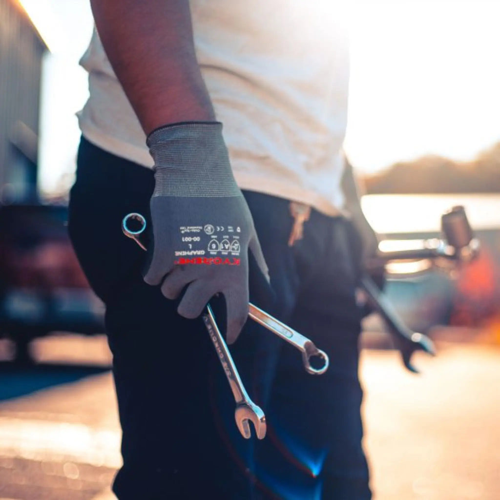 The Armor Guys 00-001 Kyorene General Purpose Work Gloves, Gray, are an essential safety accessory for workers who need reliable hand protection without sacrificing comfort or dexterity. Crafted with Kyorene material, these gloves are specifically engineered to provide superior abrasion resistance, making them a great choice for a wide range of industrial applications. The gray color provides a professional and neutral look, while the gloves' flexible, ergonomic design ensures a snug yet comfortable fit that allows for full range of motion. Whether you're working with heavy machinery, handling sharp tools, or performing general labor, the Armor Guys 00-001 gloves offer dependable protection and long-lasting durability. Featuring breathable knit construction, these general-purpose work gloves are designed for all-day wear, minimizing discomfort during extended tasks. The flexible material ensures that workers can maintain excellent tactile sensitivity and grip, allowing them to handle materials with ease. This makes them ideal for environments where both dexterity and safety are crucial. The Armor Guys 00-001 Kyorene gloves are highly versatile, offering excellent abrasion resistance and cut protection for a range of job sites. Their durable yet lightweight design makes them a popular choice for workers in industries such as construction, maintenance, and logistics, where hands-on tasks are frequent and safety is a top priority.