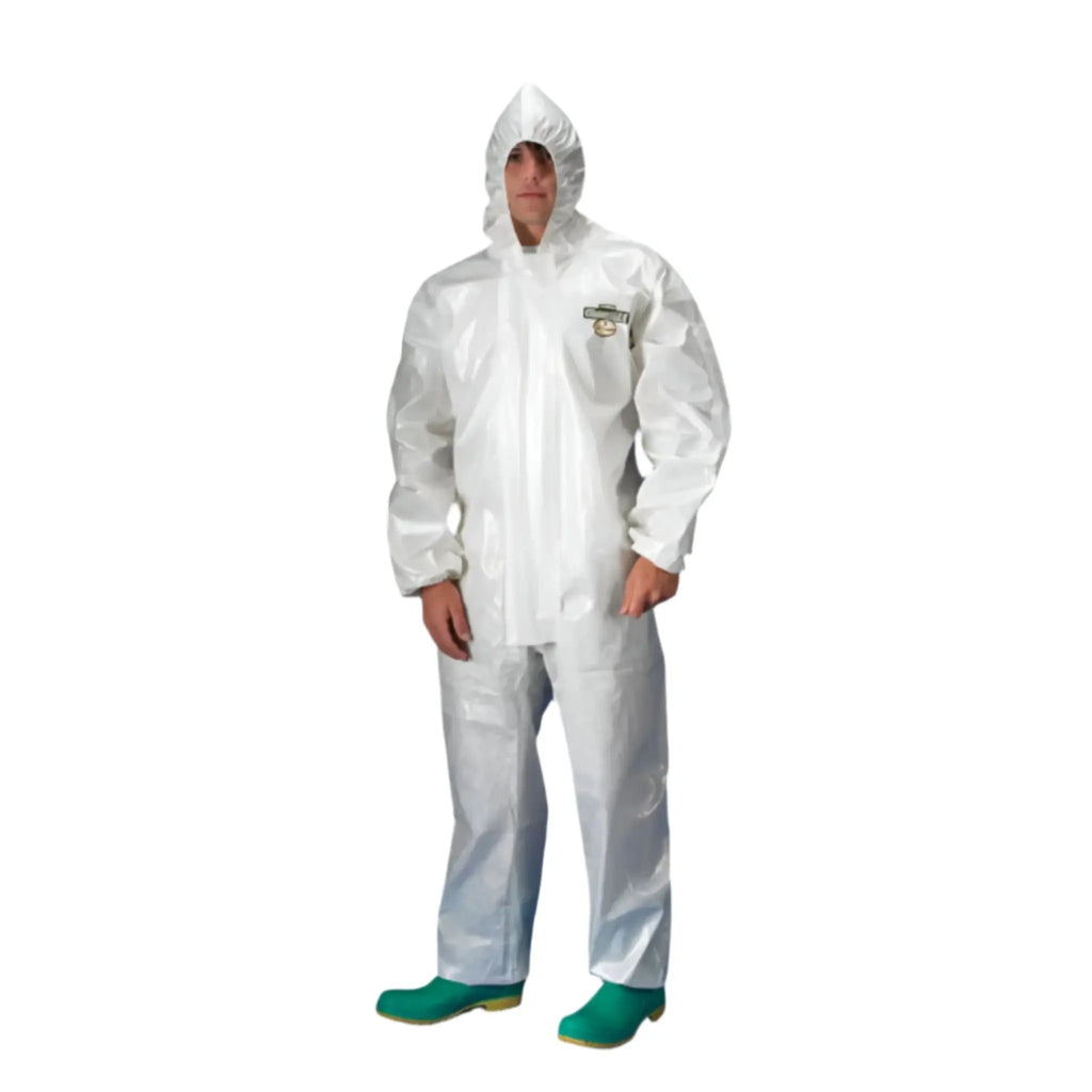 The Lakeland ChemMax 2 C2T132 Sealed Seam Coverall with Hood in white is a high-performance protective suit designed to offer superior chemical resistance and durability. Constructed from a unique multi-layer material, this coverall provides an effective barrier against a wide range of hazardous substances, ensuring safety and comfort for workers in demanding environments. The sealed seam design enhances its protective qualities by preventing the infiltration of contaminants, while the integrated hood offers full head coverage, preventing exposure from all angles. This coverall is ideal for workers involved in handling chemicals, hazardous materials, or those operating in environments where personal protection is critical. Key Specifications: Model: Lakeland ChemMax 2 C2T132 Material: Multi-layer ChemMax 2 fabric Color: White Design: Sealed seams for enhanced protection Features: Hooded coverall for full body protection Closure: Zipper front for secure fit Durability: Highly resistant to chemicals and abrasion Size Options: Medium to 5X-Large