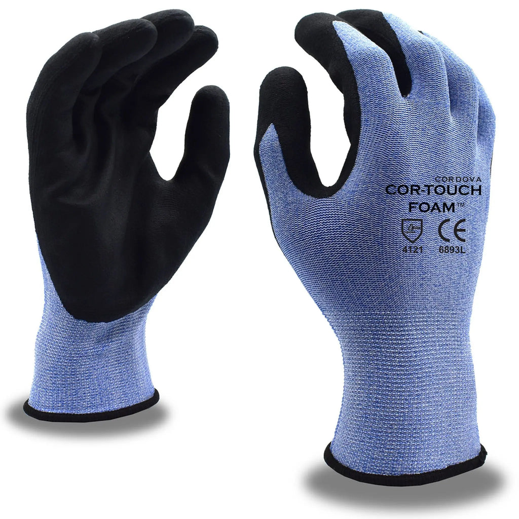 The Cordova Cor-Touch Foam 6893 13-Gauge Microfoam Nitrile Coated Safety Gloves in Blue deliver outstanding dexterity, comfort, and grip for precision tasks in industrial, construction, and maintenance environments. Designed with a seamless 13-gauge nylon shell and a microfoam nitrile coating, these gloves provide excellent abrasion resistance and enhanced tactile sensitivity, making them ideal for handling small components, tools, and materials. The breathable design helps reduce hand fatigue during extended wear, while the snug fit ensures superior control without compromising comfort.