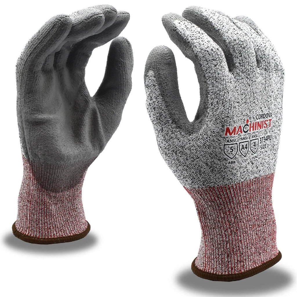 The Cordova Machinist 3734PU 13 Gauge A4 Cut Protection High-Performance Polyethylene Gloves are designed to deliver exceptional hand safety without compromising comfort or dexterity. Engineered with a high-performance polyethylene (HPPE) shell, these gloves offer superior cut resistance for demanding tasks while maintaining a lightweight, breathable fit. The polyurethane (PU) palm coating provides a secure, non-slip grip in both dry and light oily conditions, making them ideal for precision handling and extended wear. Their ergonomic design reduces hand fatigue, ensuring workers can perform with confidence and efficiency. Whether in industrial manufacturing, construction, or maintenance, these gloves meet rigorous safety requirements while allowing excellent touch sensitivity.