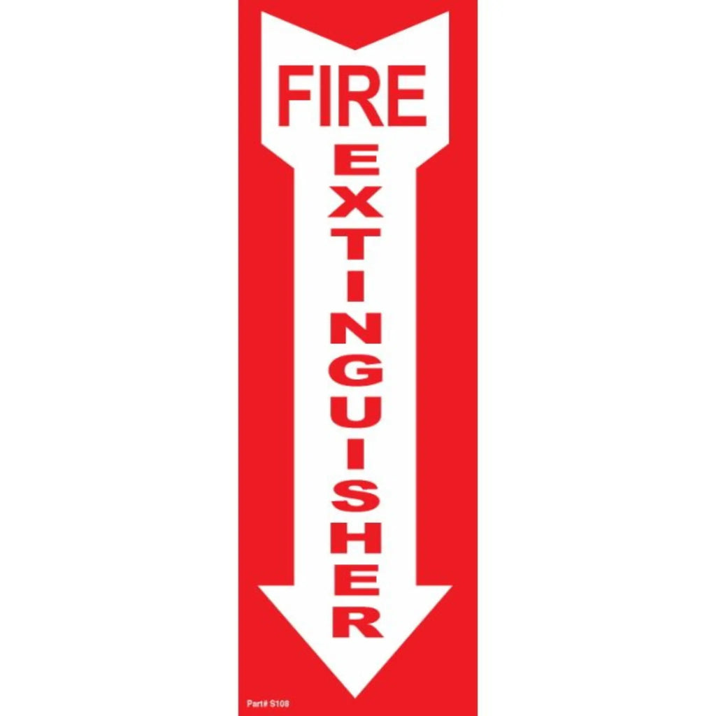 These fire extinguisher signs are durable and fade resistant because of the clear lamination. Before mounting, the surface must be clean, dry, smooth, and non-porous. The fire extinguisher signs feature red UV ink silk screened lettering within white arrow on a red background. The sign measure 4" x 12" x .004". Fire extinguisher signs are self-adhesive however they will not adhere to brick or concrete block (due to the moisture).