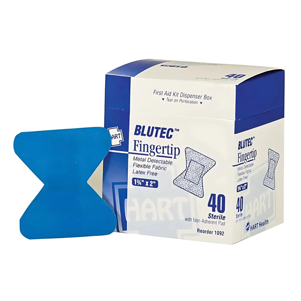 The Hart Health BLUTEC 1092 is a heavy woven elastic fingertip adhesive bandage for temporary minor wound protection.