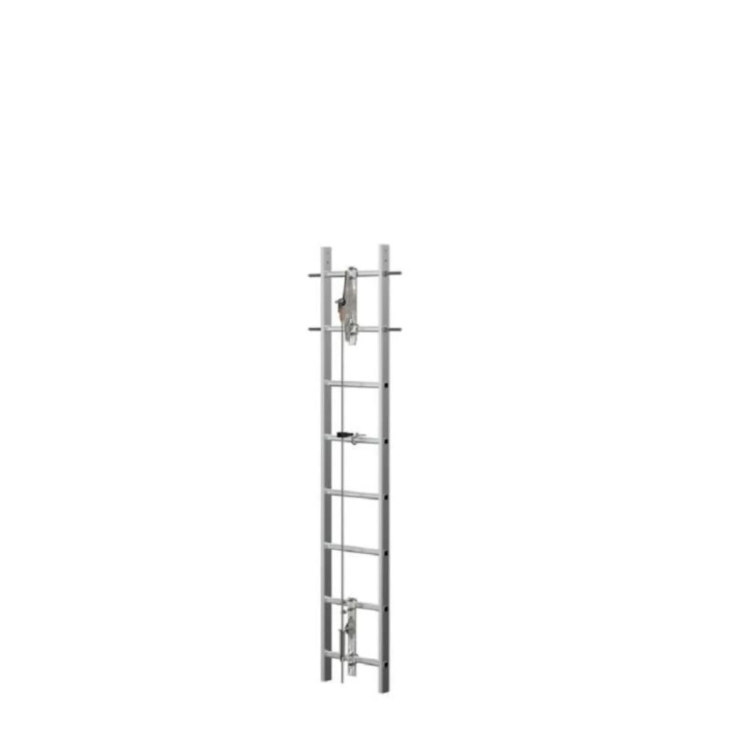 Kits include a universal top rung bracket, a heavy-duty tensioner, 3/8- inch (10mm) galvanized/stainless steel cable lifeline, all the necessary hardware, manual cable guides and instruction manual