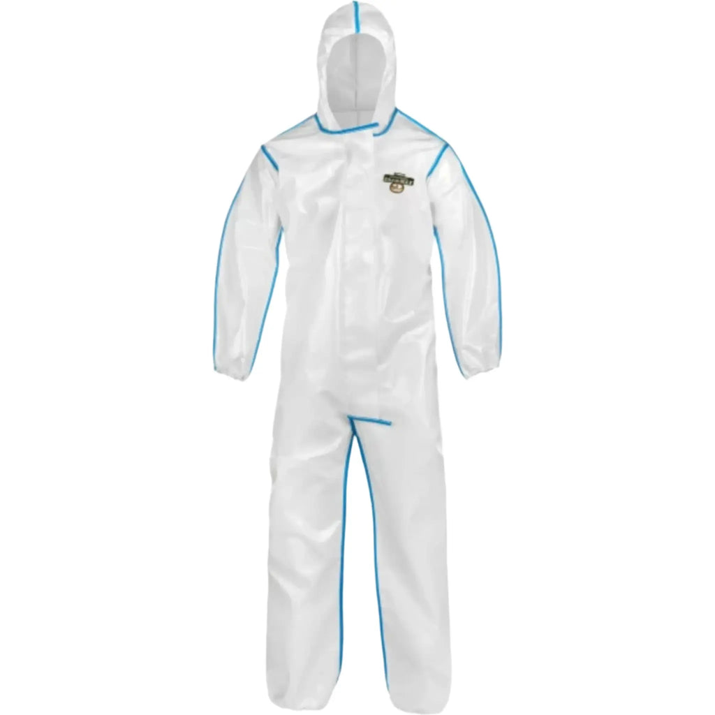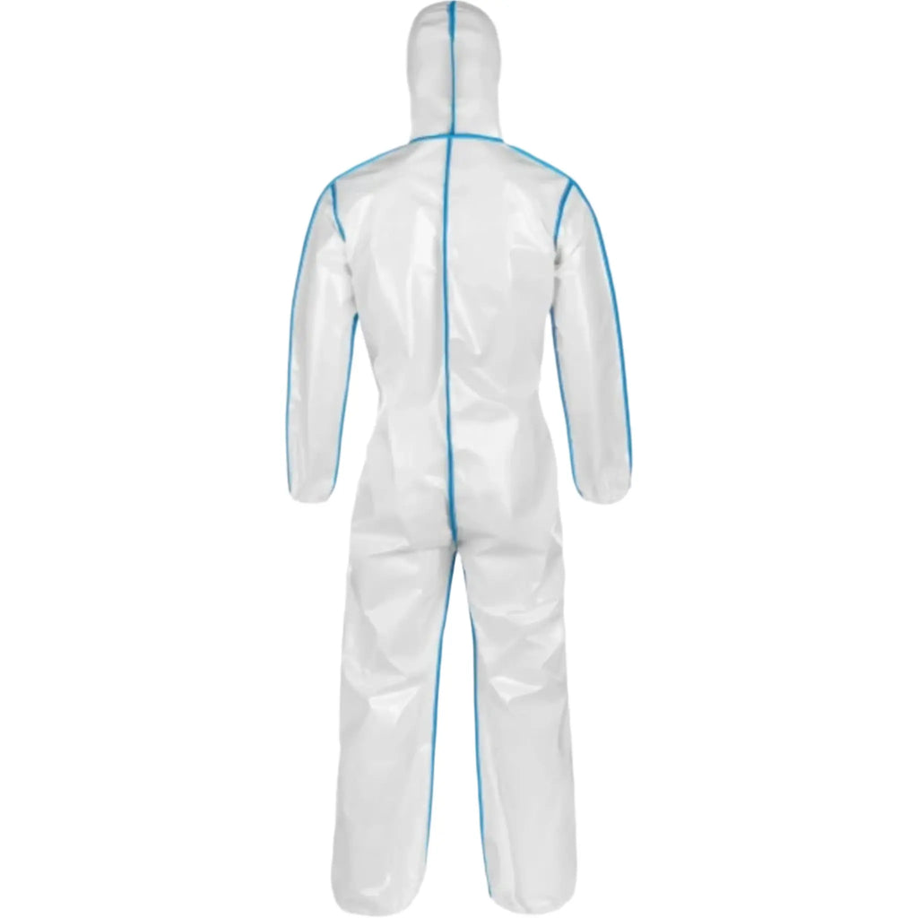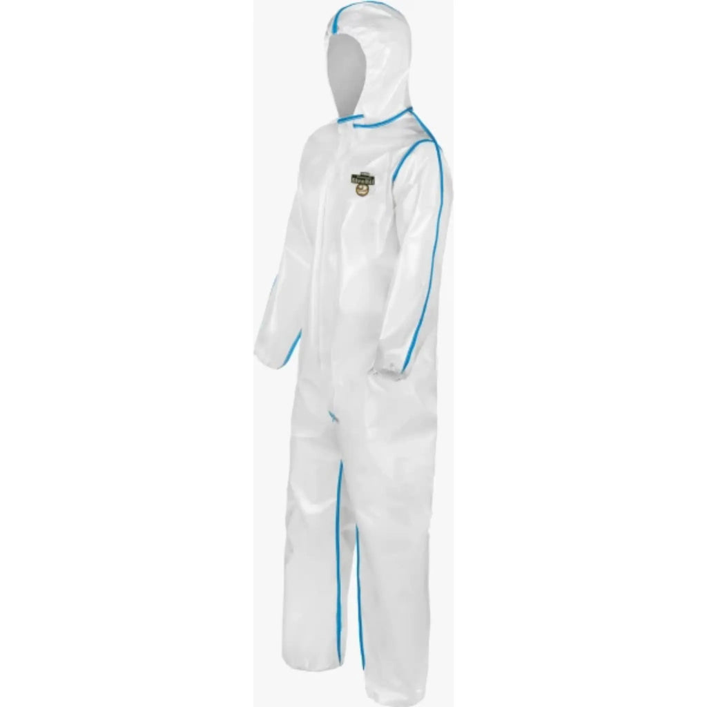 The Lakeland ChemMax 2 C2B428 Bound Seam Coverall with Attached Hood (White) offers superior protection in hazardous environments, designed for workers who require a durable and reliable suit for chemical and particulate protection. Made from advanced SMS (spunbond/meltblown/spunbond) fabric, the ChemMax 2 coverall provides an effective barrier against a broad range of industrial chemicals, particulate matter, and aerosols. The bound seam construction enhances its strength and ensures that the garment remains intact during challenging conditions. The attached hood provides additional protection for the head and neck, eliminating the need for separate headgear. Perfect for environments that demand high-performance protective clothing, the ChemMax 2 suit offers a secure, comfortable fit with a breathable design, making it an essential tool for safety in hazardous work areas. This coverall is ideal for those working in industries where exposure to toxic substances, particulates, or biological hazards is a concern.