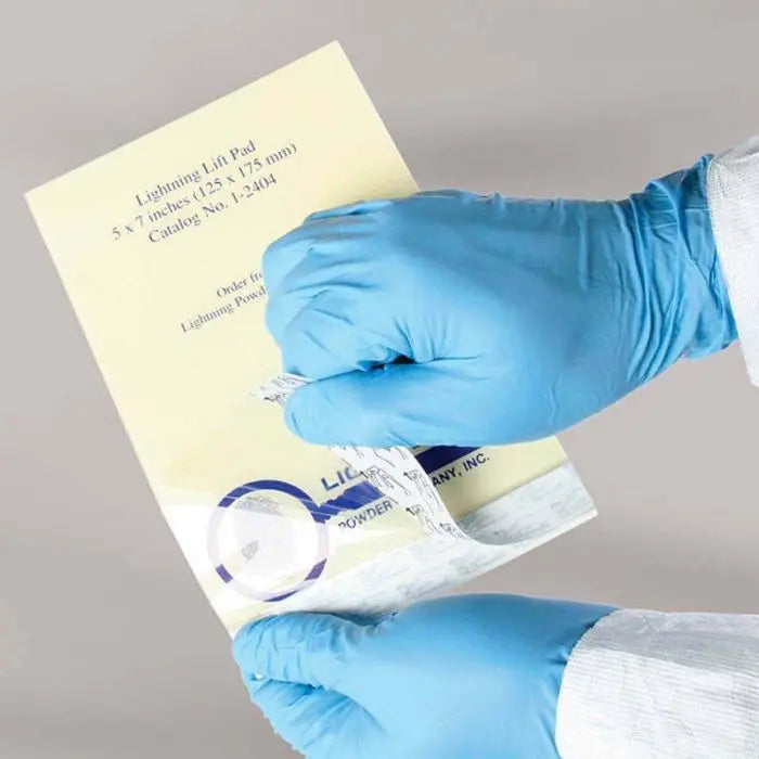 Lightning Lift Pads™ are clear pads of pre-cut latent print lifters ideal for field or in-station use. Just like lift tape, simply peel a fresh lifter from the pad when needed. A paper tab at the end of each lift keeps fingerprints off the adhesive, and the tab indicates when the print is viewed from the correct side. Placing the lift so the tab is “up” in relation to the print will simplify documentation and viewing for law enforcement officers and forensic technicians.