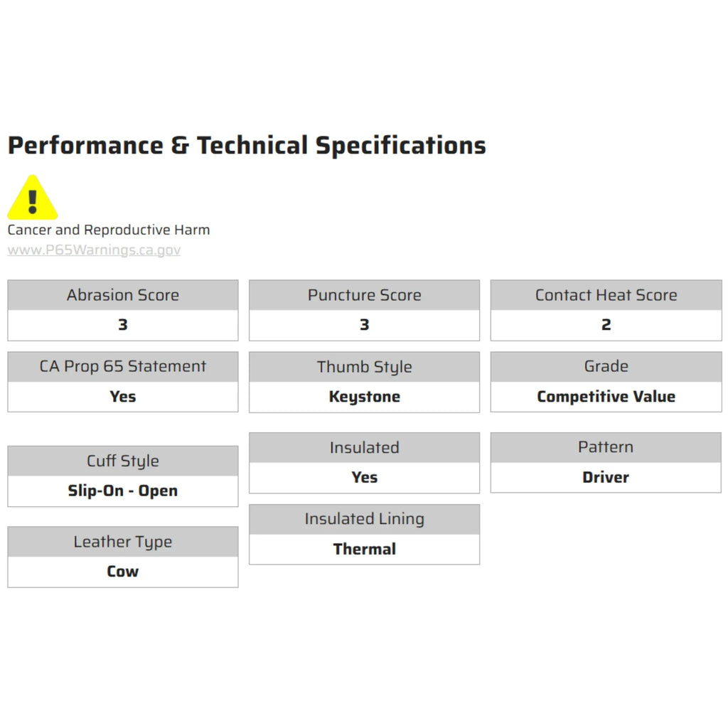 - Thermal lining provides insulation to keep hands warm in cold environments