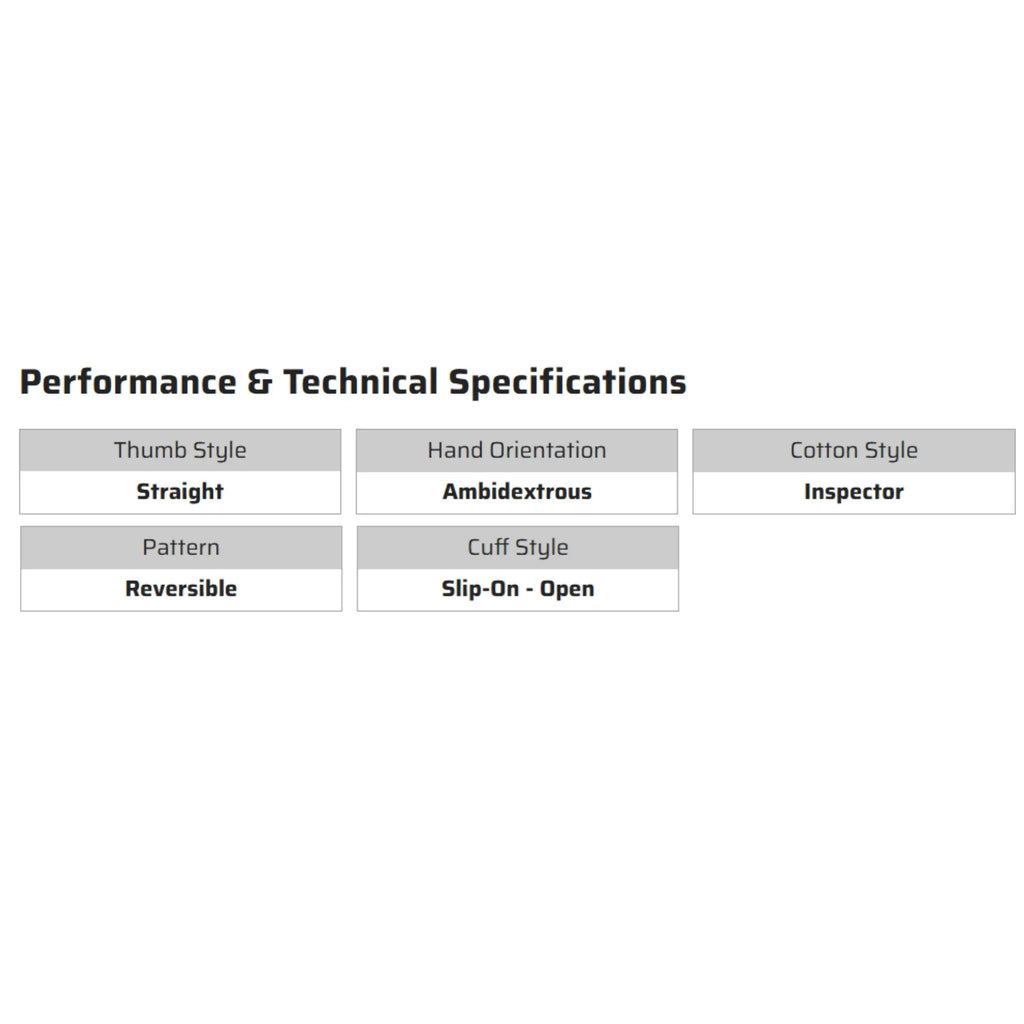 - Reversible two-piece design allows gloves to be worn on either hand for extended use