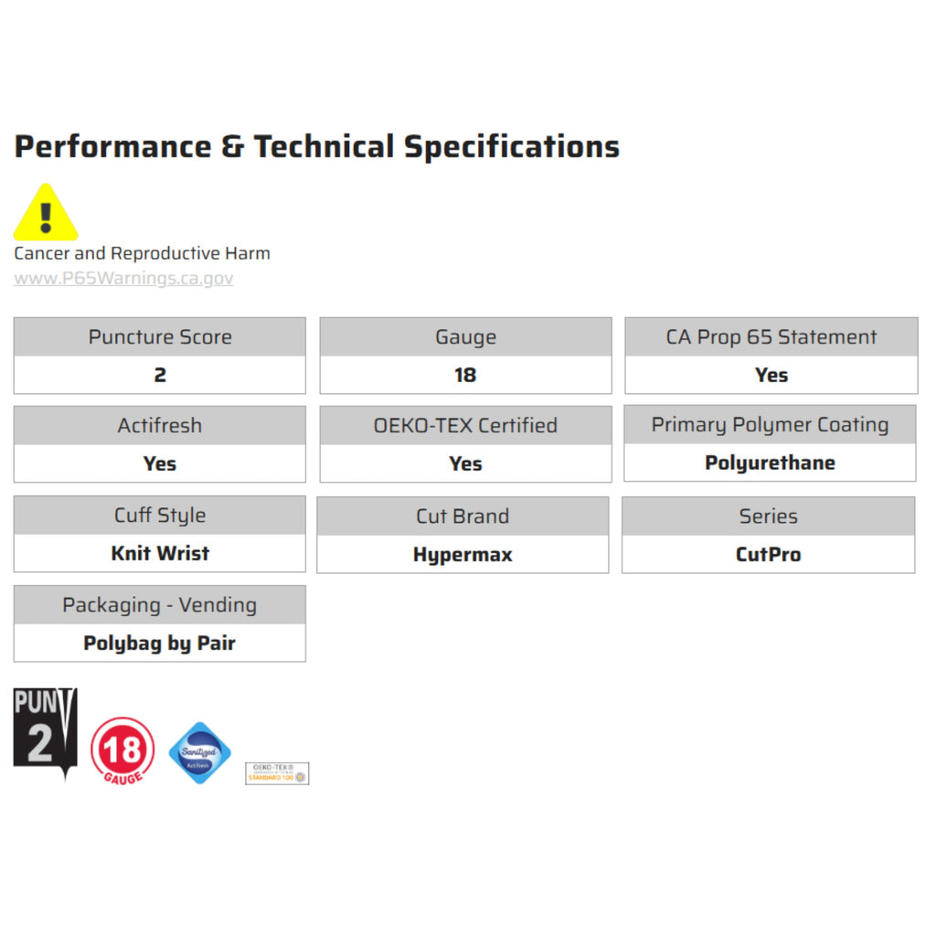 - 18-gauge HyperMax® HPPE cut-resistant shell