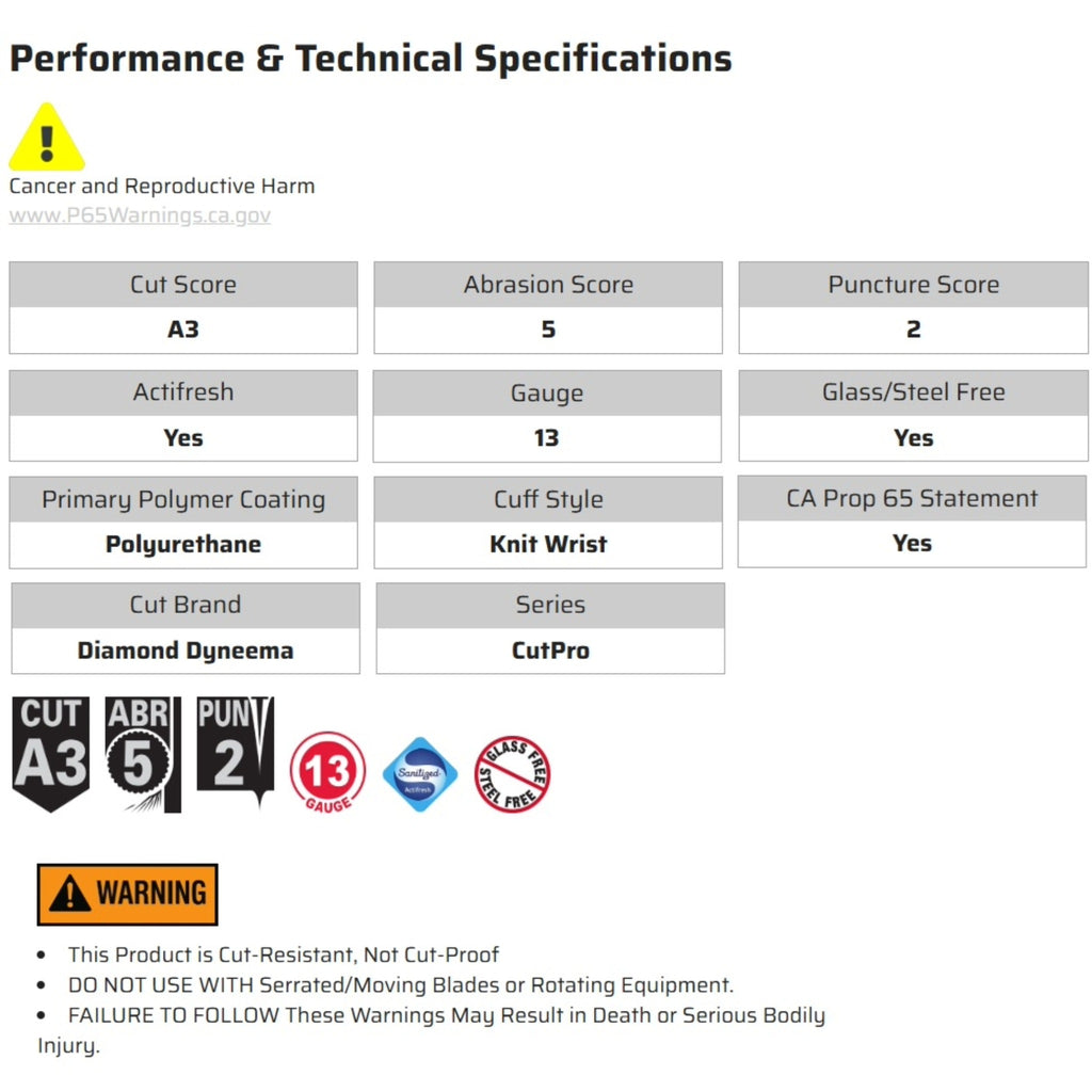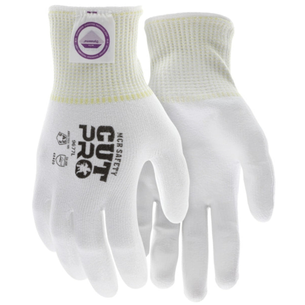 The MCR Safety CutPro 9677 PU Coated Cut Resistant Work Gloves are designed to provide advanced cut protection, comfort, and dexterity for demanding industrial environments. Constructed with 13-gauge Dyneema® Diamond Technology fiber, these gloves are lightweight yet highly durable, offering excellent cut resistance without the bulk of traditional steel or glass fiber gloves. The PU-coated palms and fingertips enhance grip and abrasion resistance, allowing for secure handling of tools, materials, and components in both wet and dry conditions. Glass and steel-free construction ensures long-lasting comfort, while the breathable design keeps hands cool during extended use. Treated with ActiFresh®, these gloves prevent odor and maintain hygiene for workers on long shifts. Perfect for applications requiring precision handling, assembly, metalworking, or automotive tasks, the CutPro 9677 delivers professional-grade dexterity and protection. Frequently used as high-dexterity industrial gloves, PU-coated grip gloves, or lightweight cut-resistant gloves, they combine safety and ergonomic comfort for modern workplaces. Available from Enviro Safety Products, a trusted and experienced supplier of certified PPE, these gloves provide reliable performance, comfort, and peace of mind for professionals across multiple industries.