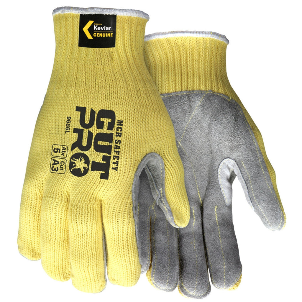 The MCR Safety CutPro 9686 Split Leather Palm Cut Resistant Work Gloves are built to provide exceptional hand protection, durability, and comfort for demanding industrial environments. Crafted with a 7-gauge Kevlar® aramid shell, these gloves offer high cut resistance while remaining lightweight and flexible for extended wear. The split leather palm enhances grip and abrasion resistance, making them ideal for handling tools, materials, or machinery safely. A reinforced thumb crotch provides additional durability in high-stress areas, extending the glove’s lifespan. Designed to withstand heat without melting, igniting, or conducting electricity, the 9686 gloves are suitable for applications where safety and performance are paramount, including welding, fabrication, and construction tasks. Frequently chosen as cut-resistant leather work gloves, split leather grip gloves, or industrial safety gloves, they provide reliable protection and comfort for precision and heavy-duty work. Available from Enviro Safety Products, a trusted and experienced supplier of certified PPE, the MCR Safety CutPro 9686 gloves combine superior safety, durability, and ergonomic design to meet the rigorous demands of modern workplaces.