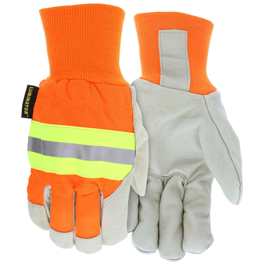 The MCR Safety Luminator Series 3440 Select B Grade Grain Pigskin Leather Palm Drivers Work Gloves are expertly engineered to keep your hands warm, visible, and protected in challenging cold-weather environments. Featuring a genuine pigskin leather palm for durability and flexibility, these insulated work gloves are lined with Thermosock® for dependable warmth and comfort during long winter shifts. The hi-visibility orange back with reflective striping ensures you remain seen in low-light or high-traffic zones—ideal for road crews, construction teams, and outdoor technicians. A snug knit wrist helps seal out cold air, dust, and debris, making these gloves a go-to choice for winter PPE and insulated driver gloves. Users often ask whether these gloves maintain flexibility when wet—pigskin naturally stays soft and pliable even after exposure to moisture, ensuring all-day comfort and control. With their strong build and reflective safety features, the MCR Safety 3440 gloves offer exceptional grip, insulation, and durability that professionals rely on in cold-weather operations. Available from Enviro Safety Products, an experienced and trusted supplier of certified PPE, these hi-vis insulated leather gloves provide the right balance of warmth, visibility, and performance for demanding outdoor and industrial applications.