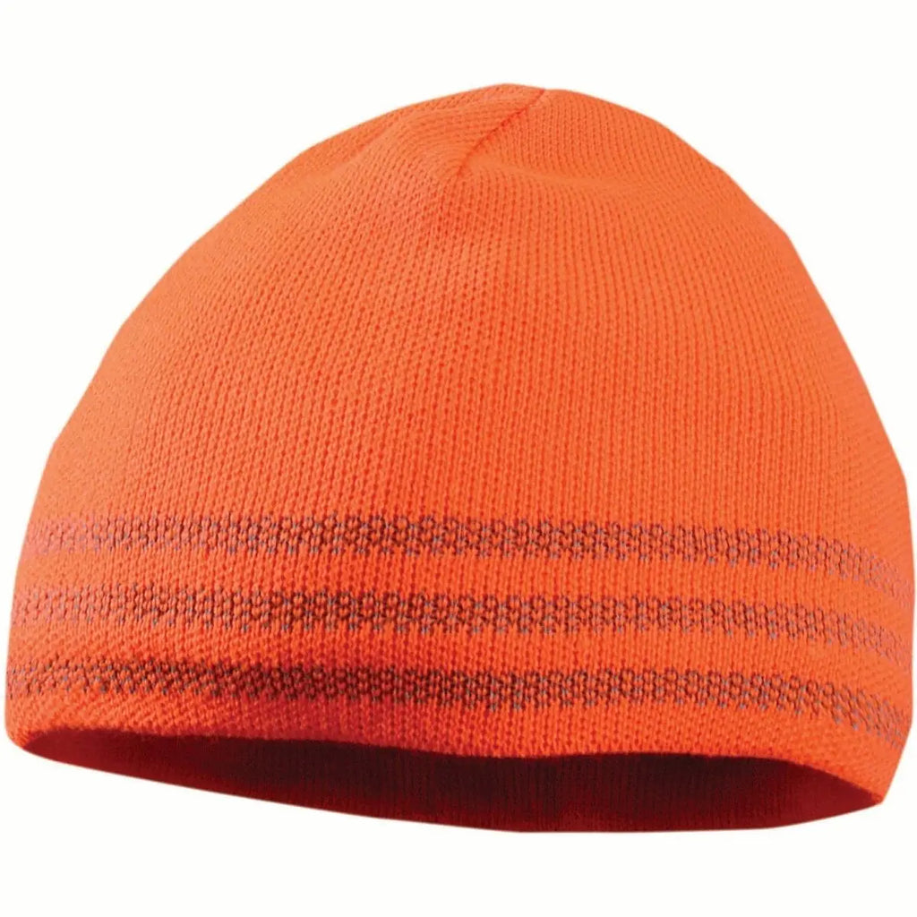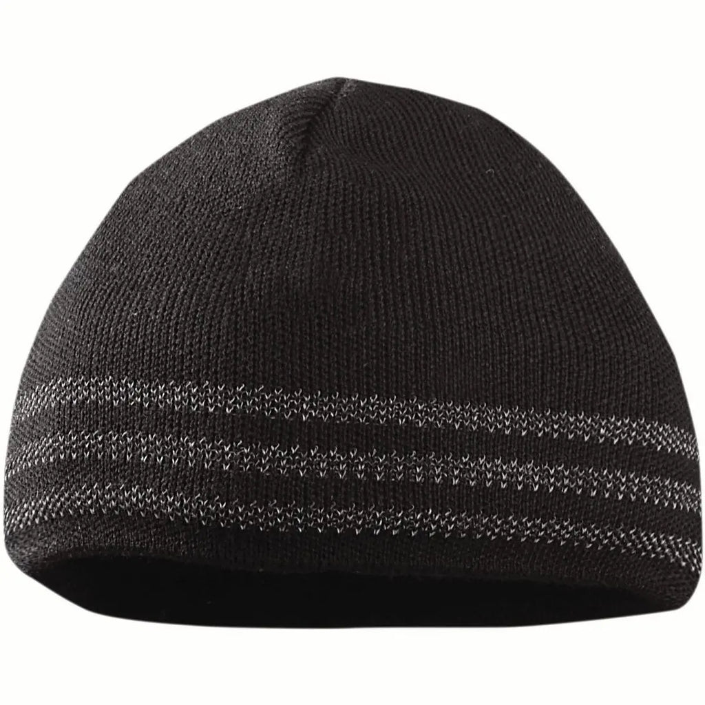 • Rib knit with 3 wide bands of reflective threads, double layer