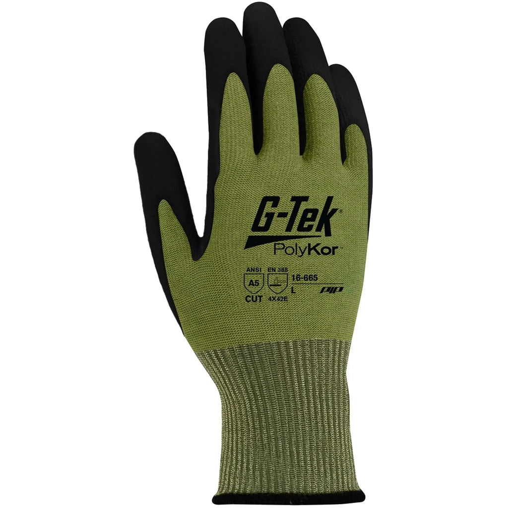 The PIP 16-665 G-Tek Seamless Knit PolyKor Blended Glove with Polyurethane Coated Smooth Grip on Palm & Fingers, Green, 1 Dozen, is designed to provide a reliable combination of comfort, dexterity, and protection for industrial professionals. Constructed with a seamless PolyKor blended shell, this glove offers ANSI A2 cut resistance while remaining lightweight, flexible, and breathable, making it ideal for extended use in manufacturing, assembly, or warehouse tasks. The polyurethane-coated smooth grip on the palm and fingers ensures secure handling of tools, small parts, and machinery, enhancing precision and reducing the risk of accidents. Its bright green color improves visibility on busy worksites and maintains a professional appearance even with heavy use. Workers often ask if these gloves are suitable for wet or cold environments while optimized for dry and moderately handled materials, they can be paired with additional PPE for colder conditions. Washable and reusable, the 16-665 glove delivers long-term value and supports sustainable PPE practices. Enviro Safety Products, a trusted and certified supplier of professional PPE, ensures that every pair of PIP G-Tek 16-665 gloves meets strict quality standards, providing dependable protection, comfort, and performance across diverse industrial and commercial applications.