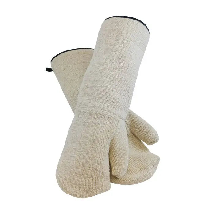 PIP Terry Cloth Baker's Mitt is used for a wide variety of duties which include in the automotive industry, appliance manufacturing, heater/air conditioner manufacturing, metal stamping operations, bakeries, ceramic plant manufacturing and other industries requiring moderate heat and/or cut protection.