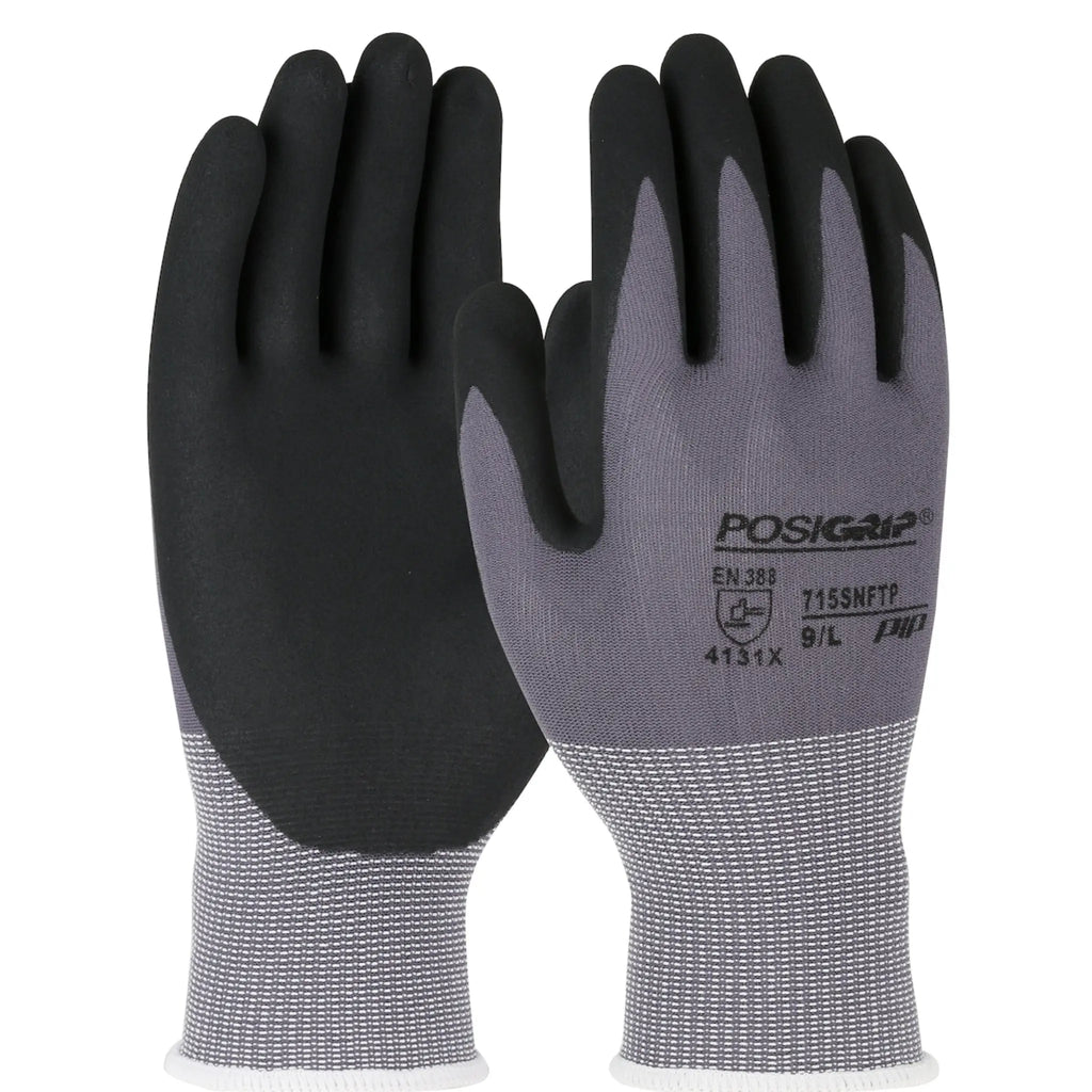 The PIP West Chester 715SNFTP PosiGrip Nylon Glove with Nitrile Coated Foam Grip is engineered for high-performance grip, flexibility, and long-lasting comfort in industrial and construction settings. Made with a seamless black nylon shell and gray foam nitrile coating, this glove offers excellent abrasion resistance and breathability for extended wear. Designed with a snug knit wrist to prevent dirt and debris from entering, it also delivers tactile sensitivity, making it ideal for precision tasks. The nitrile foam coating enhances grip in both dry and light oil conditions, while the lightweight construction reduces hand fatigue. Whether you're handling tools, parts, or machinery, this safety glove provides the protection and dexterity your team needs. Trusted by professionals in manufacturing, automotive, and assembly lines, it’s built to keep your hands safe without sacrificing performance.