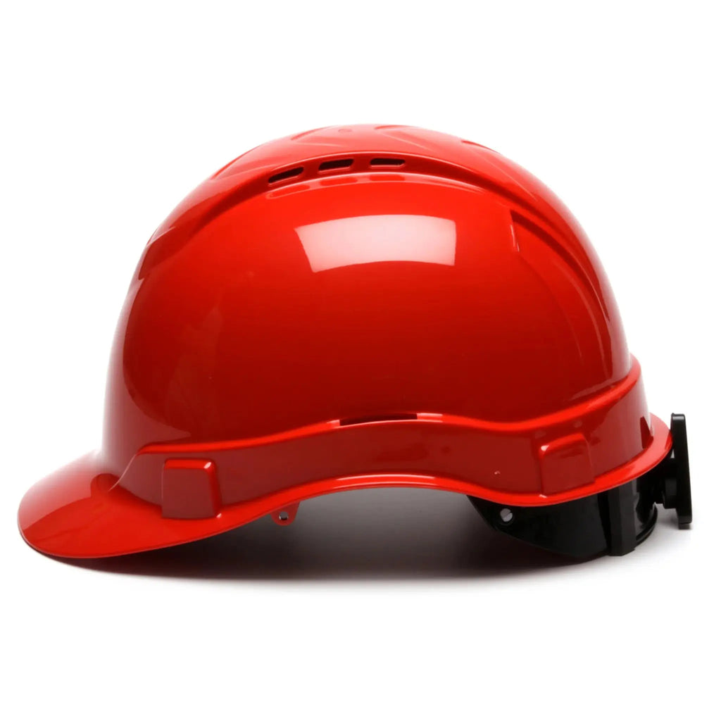 The Ridgeline Cap Style Hard Hat is a lightweight yet durable hard hat that will keep you safe and comfortable while out on the jobsite. The vented helmet allows for the user to be cooler throughout the day. The hard hat meets all ANSI Z89.1 Standards, Type I, Class C, G, and E, CSA Z94.1-15 and features ABS material Strong, yet ultra-light for seemingly weightless protection Low profile design Offers a low center of gravity for better balance Rear padded suspension Provides additional level of comfort on the wearers’ neck 4-position harness points Allows you to move the harness forward, backward, up or down allowing for the most optimal position for ultimate comfort Replaceable sweat band Padded fabric and polyurethane foam for all day wear Vented pressure pad Keeps the straps in place providing an additional level of comfort Easy to grasp triangle knob Adjusts the suspension from 6 1/2 to 8-inch hat sizes Swinging hinge points Allows you to find the most comfortable position on the back of your head. Per ANSI Z89.1, Pyramex recommends the following: The service life of a helmet begins when the helmet is placed into service. The useful service life will vary dependent on the application. Based on experience, the average service life is 6 months to 2 years from the time the helmet is placed into service. With proper care and storage, the maximum service life is up to 5 years. As long as helmets are stored in reasonable conditions, away from excessive heat, moisture, and light, the maximum shelf life is 5 years.All Pyramex helmets include a date code that is molded into the underside of the shell’s brim that shows the month and year that the helmet was manufactured.