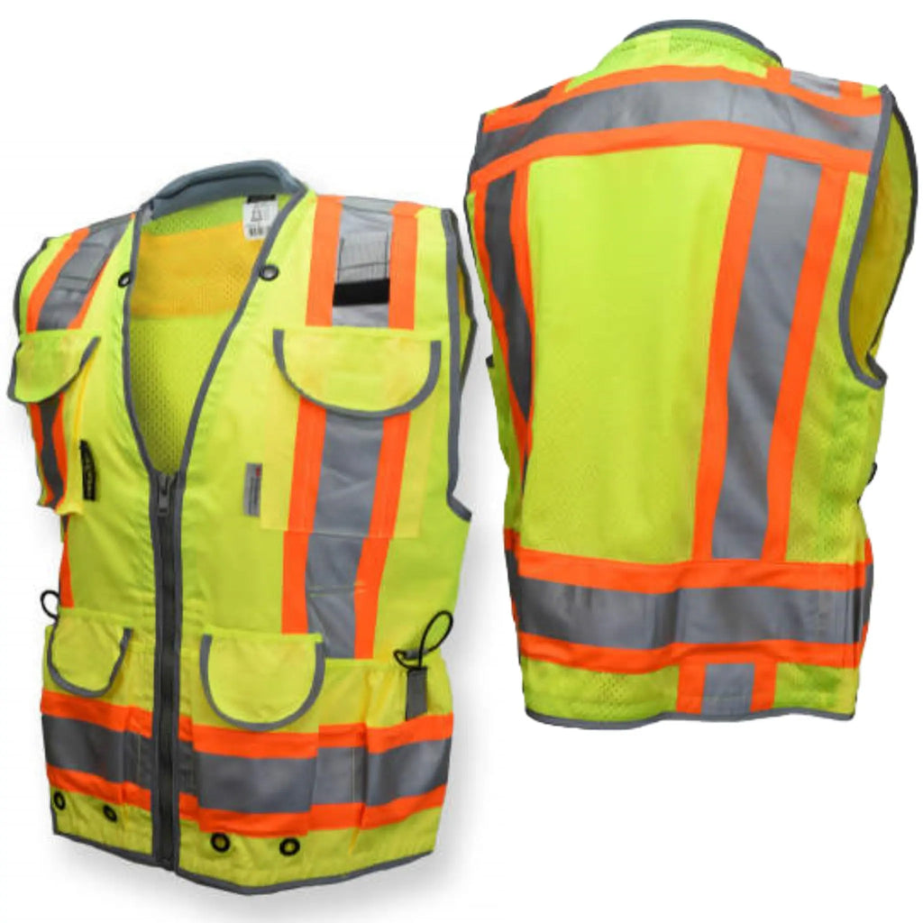 The Radians SV55-2ZGD Class 2 Heavy Woven Two-Tone Engineer Vest, Hi-Vis Green is a premium safety vest designed for professionals who demand both durability and visibility on the job site. Built with a heavy woven polyester fabric, this vest provides superior strength and long-lasting performance, making it ideal for tough industrial and construction environments. Its high-visibility green color and contrasting two-tone reflective striping enhance daytime and low-light visibility, helping workers stay safe and compliant with ANSI/ISEA 107 standards. Featuring a zipper front closure, multiple reinforced pockets, and a functional design tailored for engineers and supervisors, the SV55-2ZGD combines safety, convenience, and professional appearance. Trusted by safety managers and field professionals, this vest delivers a balance of comfort, compliance, and rugged dependability, making it a reliable choice for high-risk work settings.