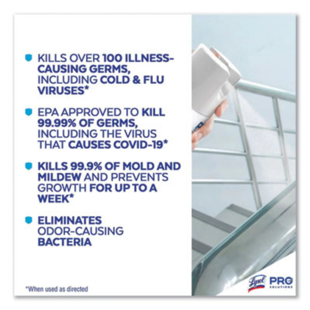 The Professional Lysol RAC04675EA Disinfectant Spray from Reckitt Benckiser is a fresh-scented liquid disinfectant/sanitizer that comes in a 19 oz aerosol spray. It is designed for use on hard, non-porous surfaces and effectively targets bacteria, fungus, germs, mildew, mold, and viruses. The chemical compound includes Alkyl (50% C14, 40% C12, 10% C16) Dimethyl Benzyl Ammonium Saccharinate and ethanol. The product complies with various standards, including EPA Reg. No. 777-99, EPA List N, VOC limits (including California), TSCA regulations, OSHA Bloodborne Pathogens Standards, AOAC Germicidal Spray Product Test Standards, and NSF Classification D1.