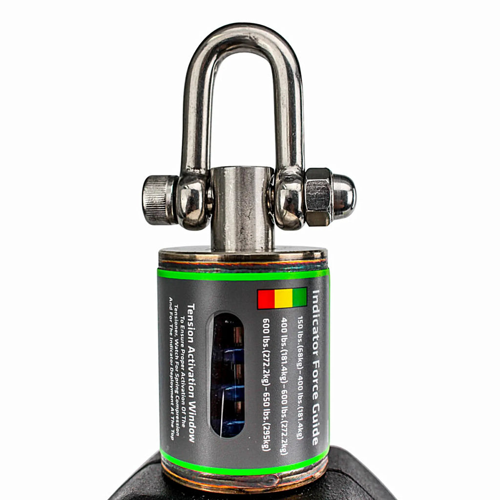 The StopLink Brake V2 is an inline energy absorber for the Safewaze SafeLink HLL System. This brake drastically reduces force loads applied to the anchor while providing low minimum clearance heights. Built-in tension indicator saves time and increases accuracy.