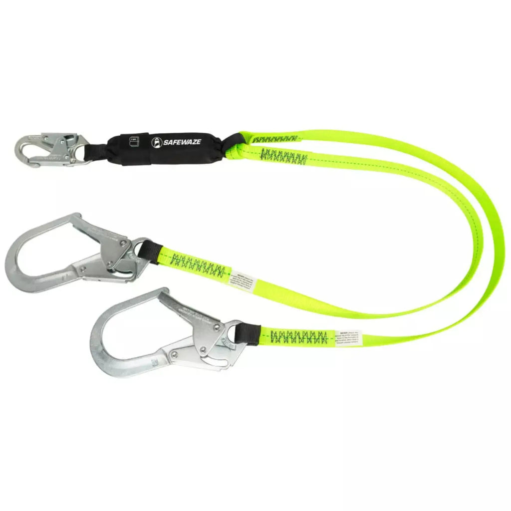 The Safewaze FS566 PRO is an Energy Absorbing Lanyard with UV and abrasion resistant hi-vis green webbing, and durable ballistic shock cover.