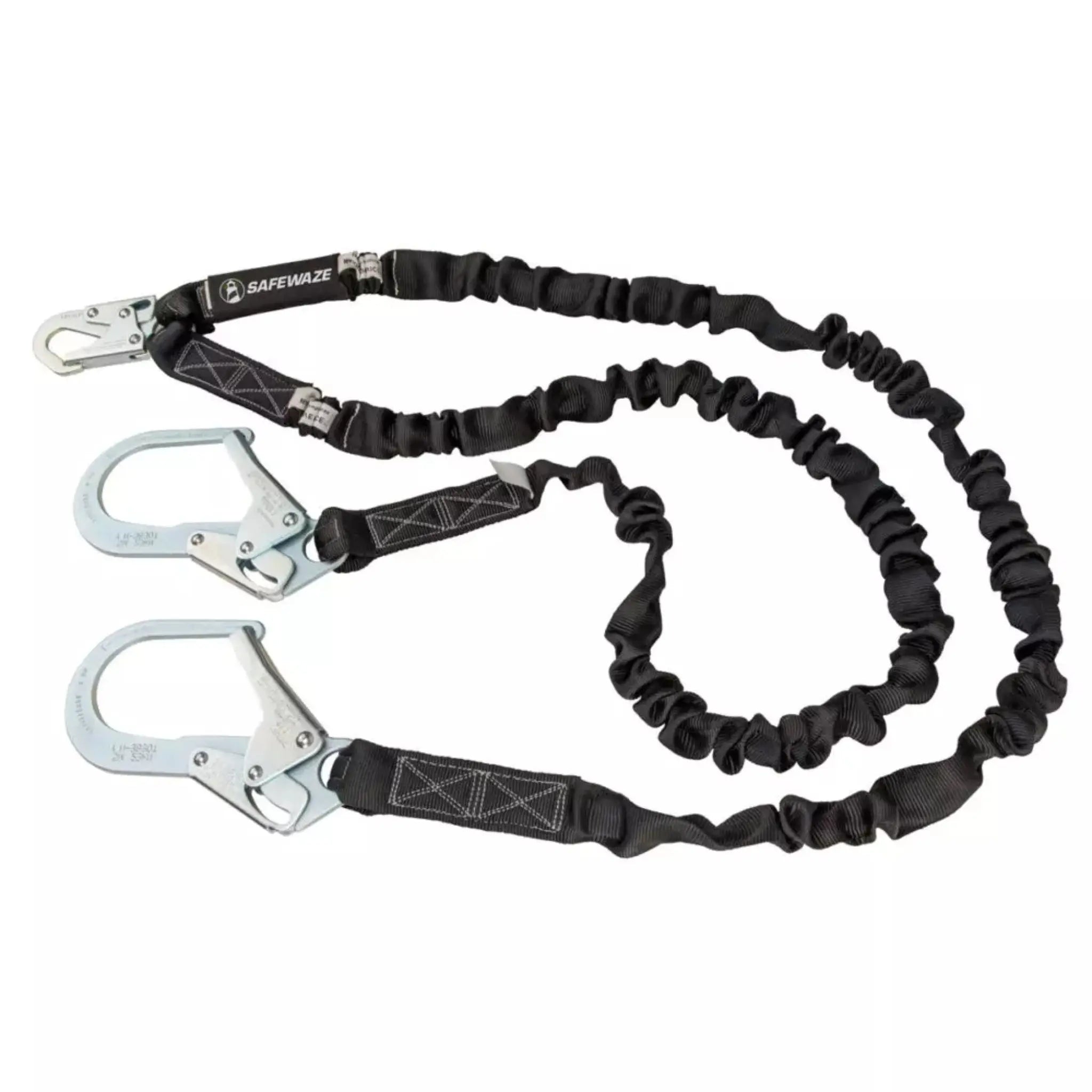 Safewaze FS88586 is a V-Line 6' Internal Energy energy-absorbing lanyard with dual leg and rebar hooks.