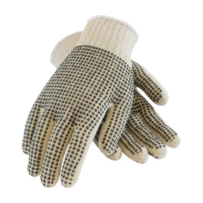 Seamless Knit Cotton / Polyester with Double-Sided PVC Dot Grip Glove is used in a variety of duty applications such as warehousing, package handling, bottle handling, construction and light duty general work situations.