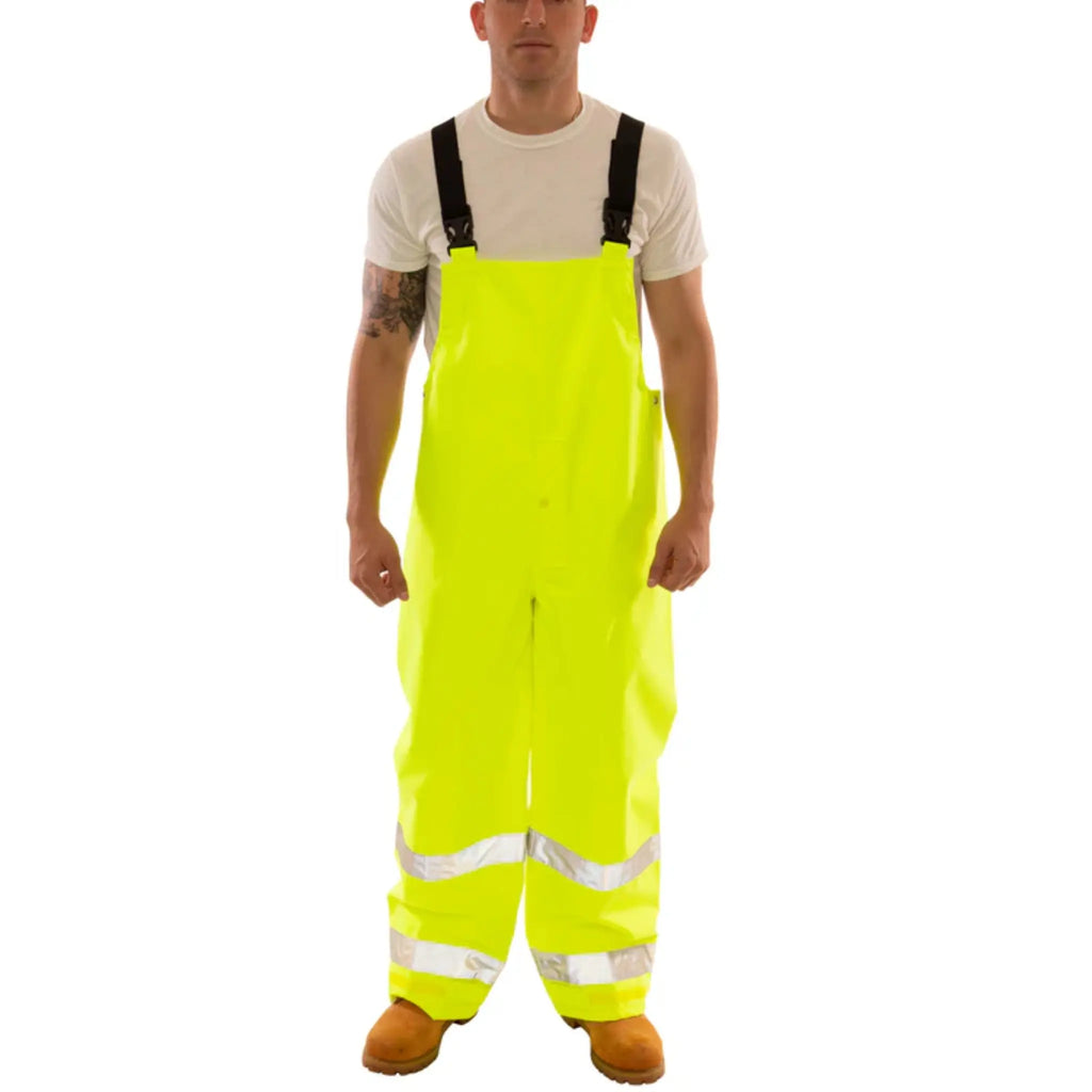 The Tingley O24122 Icon Overall in Hi-Vis Yellow is a premium choice for professionals who demand reliable protection, visibility, and comfort in challenging work environments. Engineered with high-performance polyurethane on 300-denier polyester fabric, this waterproof and windproof overall provides exceptional durability while maintaining flexibility for ease of movement. The bright hi-visibility yellow color, enhanced with 2-inch silver reflective tape, ensures that workers remain clearly visible even in low-light or high-traffic conditions, meeting ANSI/ISEA 107 Class E compliance standards. Adjustable suspenders and a snap-fly front make these overalls easy to put on and customize for a secure fit, while reinforced knees and seams offer additional durability in high-stress areas. Designed for versatility, the Tingley Icon Overall is perfect for a wide range of industries, ensuring workers stay protected from rain, wind, and hazards while maintaining visibility and mobility on the job.